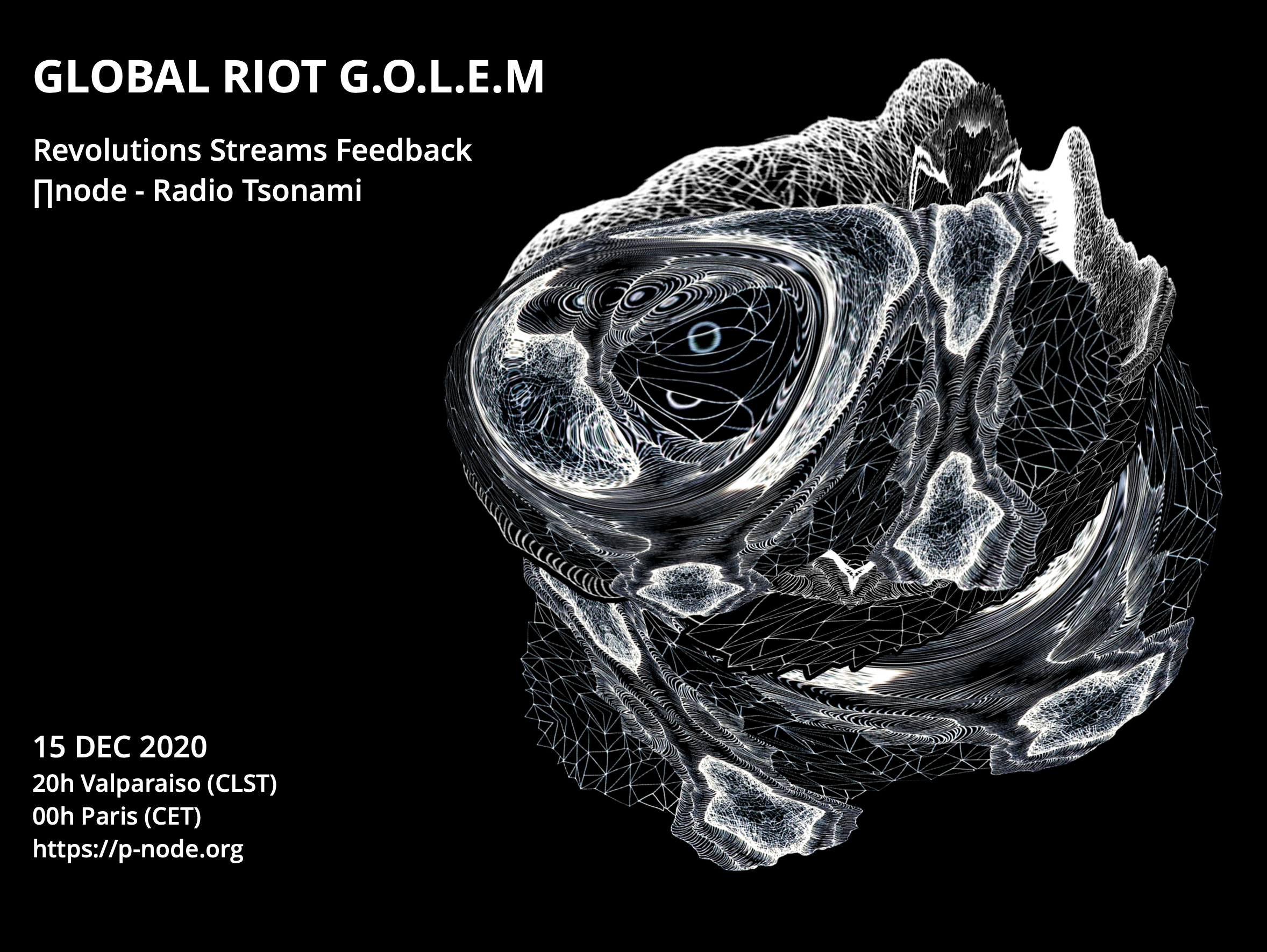 For this performance for the Tsonami festival 2020 we'll make a special version of the Golem using sounds of social and political struggles from South America, North America, Asia, Middle East and Europe. An interpenetration of our local movements, demonstrations, and confrontations with State repression, in order to create and share a global multilingual soundtrack for struggle, a sonic contagion that will spread across radio waves, penetrate the cables that connect us and seep through the membranes of your speakers...