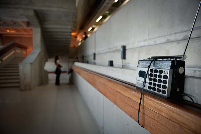Several radio transceivers hybrid FM/Web are installed along the Canal de l'Ourcq. The audience is invited to contribute, sending sounds to the pi-boxes, on the principle of an open mic (through the web, or simply calling with their phones).