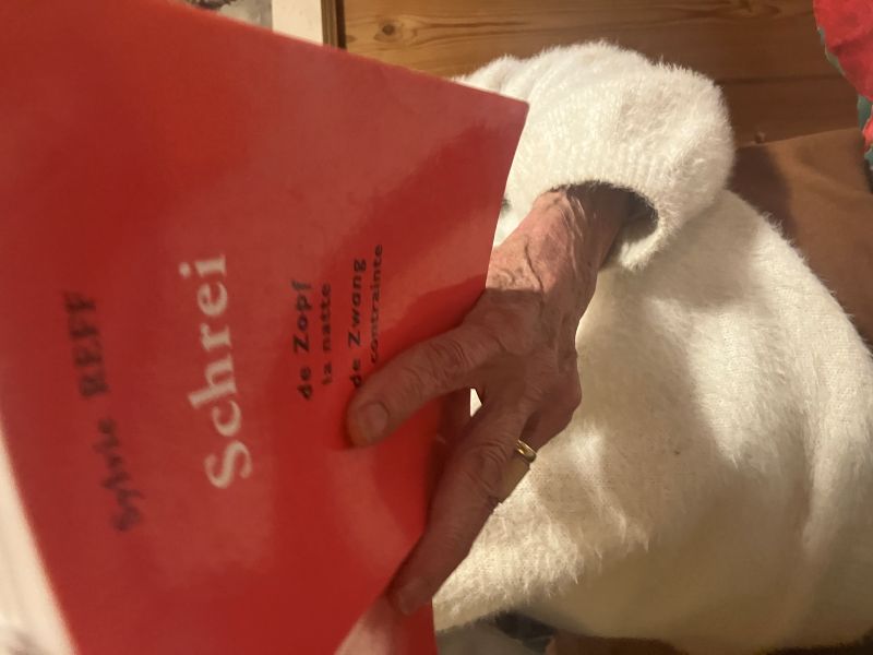 S`hàt sini Lieder immer vorgstellt un kurz iwersetzt in de Sproch vum Lànd wo Sì gsunge hàt. Un Sylvie hàt oï Büech gschrìwa... Mr han Chance.