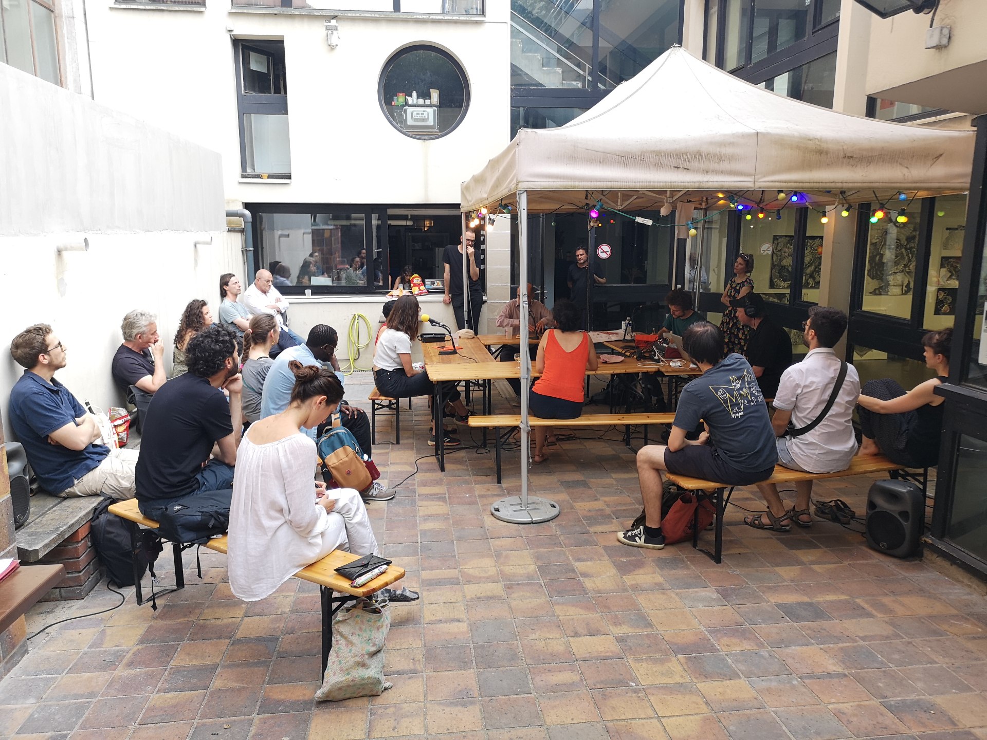 Avec Gary Libot (Le Chiffon), René Dutrey (secrétaire général au Haut Comité pour le Logement des Personnes Défavorisées) et des représentant.es de La Clé, de La Parole Errante et de La Générale.