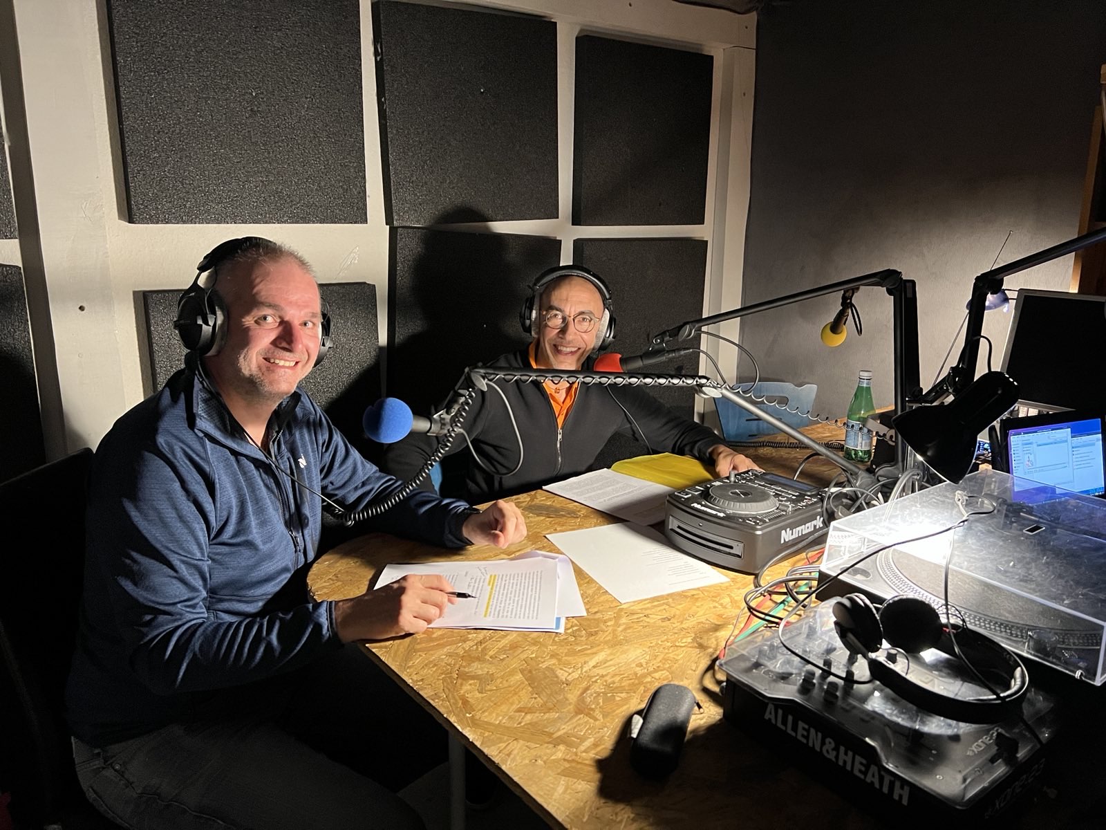 Denis et Michel dans le studio Chabanaud de la radio à Mulhouse