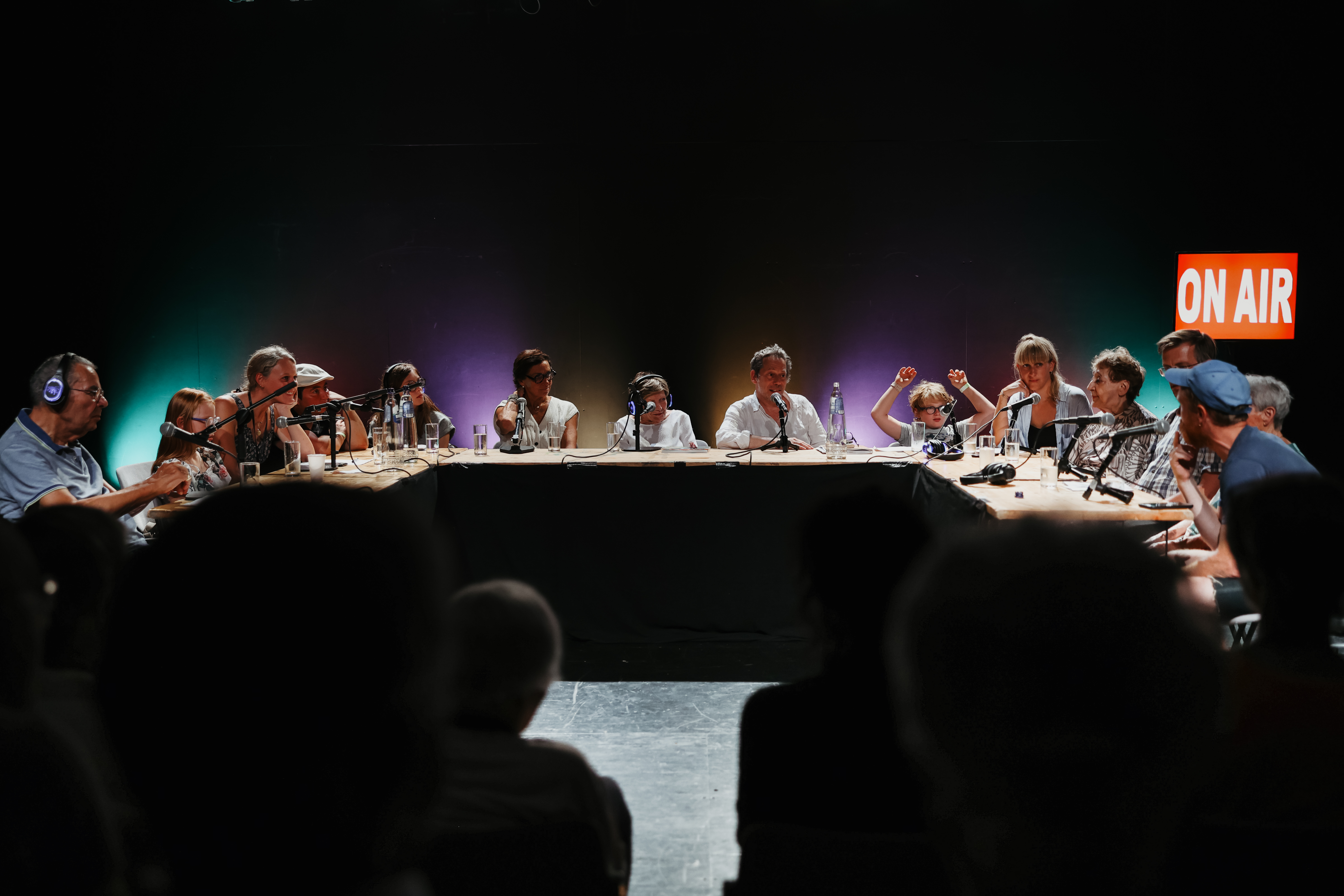 en direct et en public au théâtre de Namur, pour l'Intime festival, avec des résidents de la maison de repos Le Grand Pré à Wépion, et du foyer pour enfants L’Horizon- asbl Le Point Virgule à Bois-de-Villers.