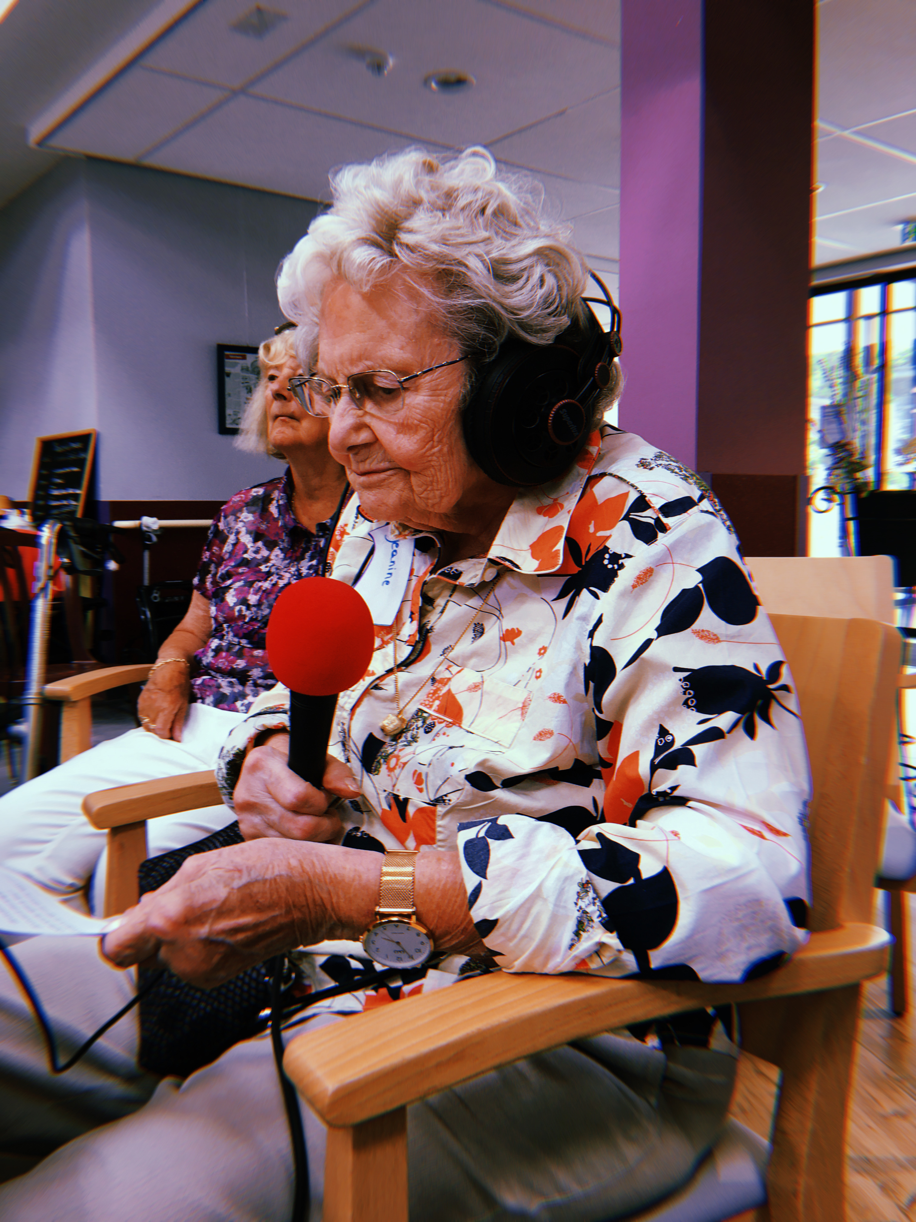 en direct & en public, à la maison de repos le Grand Pré à Wépion avec notre invitée Aliette Lochy, chercheuse sur le cerveau et la diffusion de notre reportage à la guinguette de radio chevauchoir
