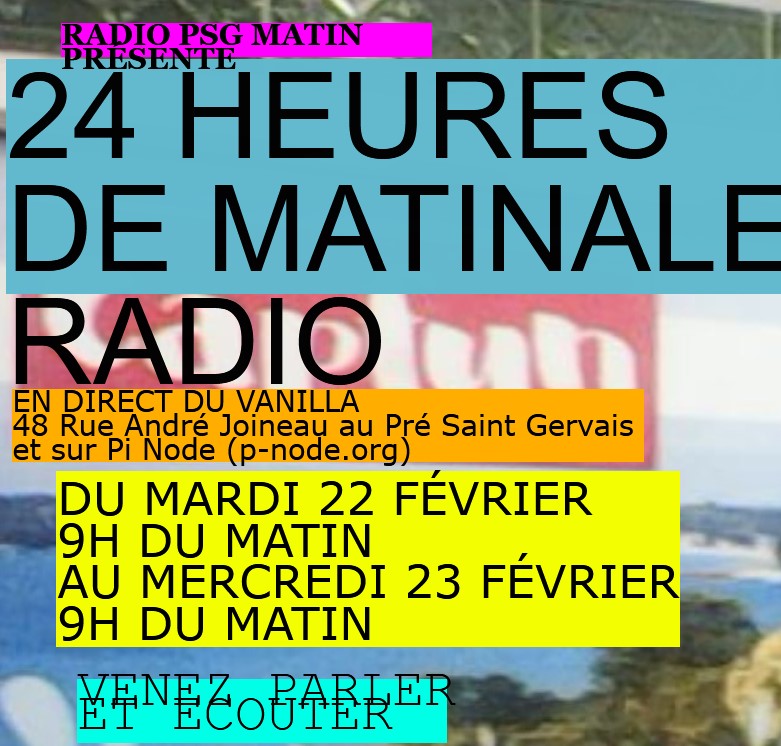 09:00 - 09:30 : radio psg matin, lancement des pierres et du barda, sur place