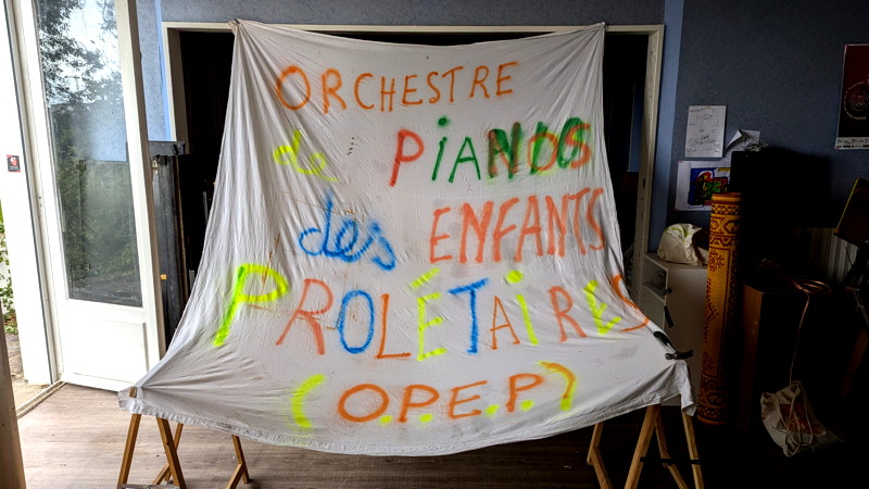 Un document sonore étonnant : au P9, le 22 septembre 2024, dans le cadre du Festival de l'Automne Furieux et du projet 11 pianos, Romaric Sobac mène l'orchestre de pianos des enfants prolétaires. Le site du Projet 9 : https://projetneuf.cc/