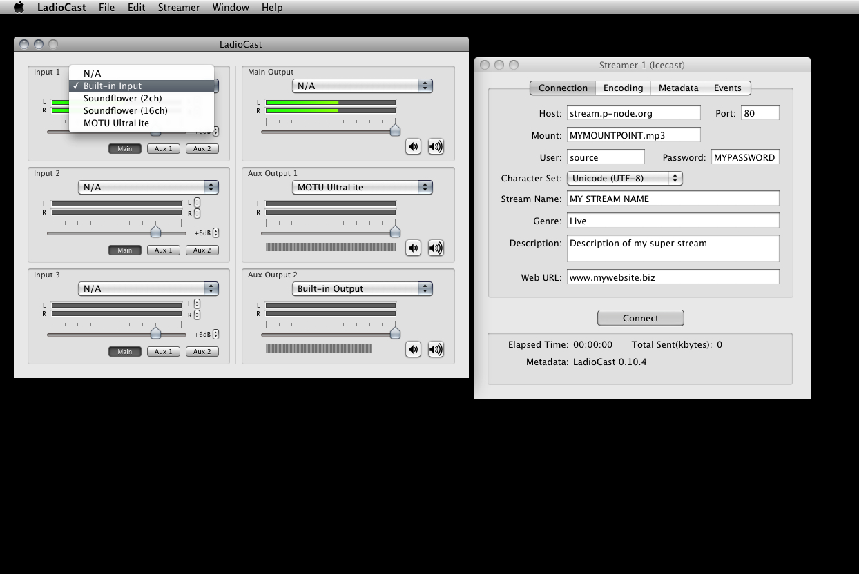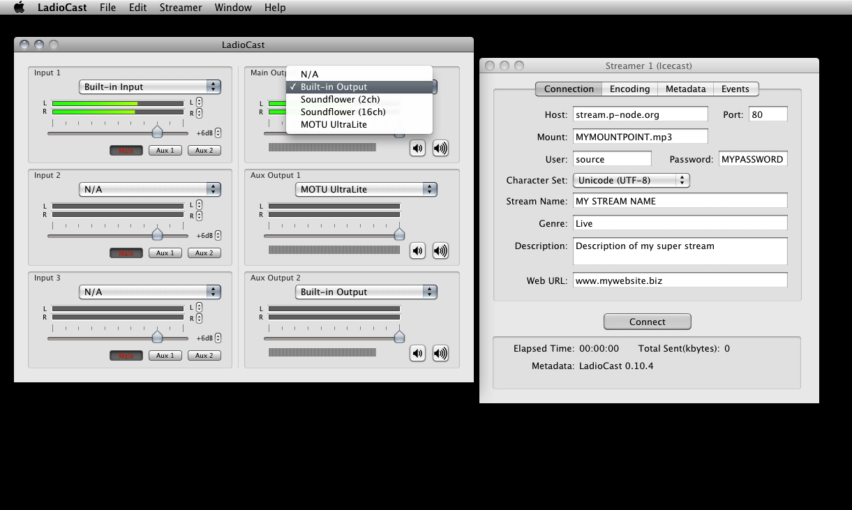 Ladiocast is a simple streamer for Mac OSX.