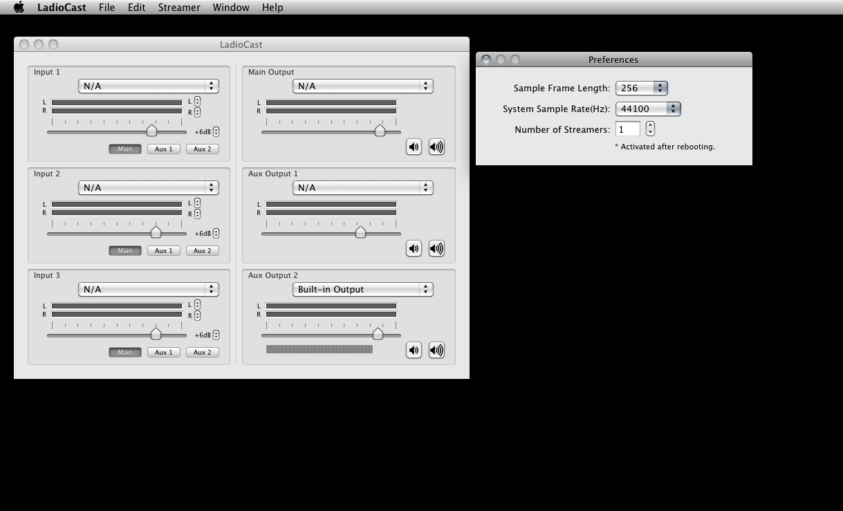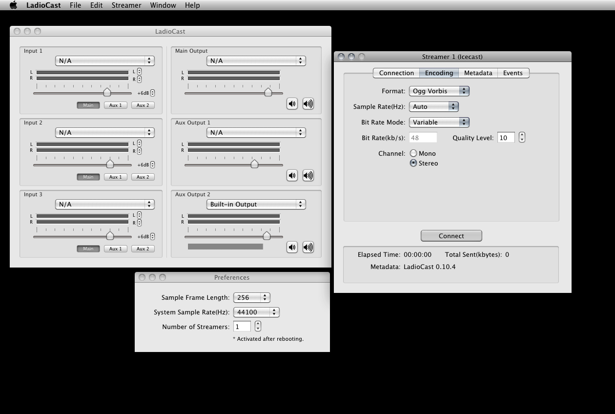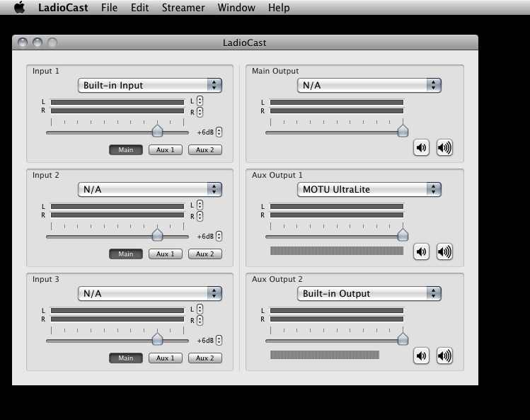 When Ladiocast is open, the window look like this: