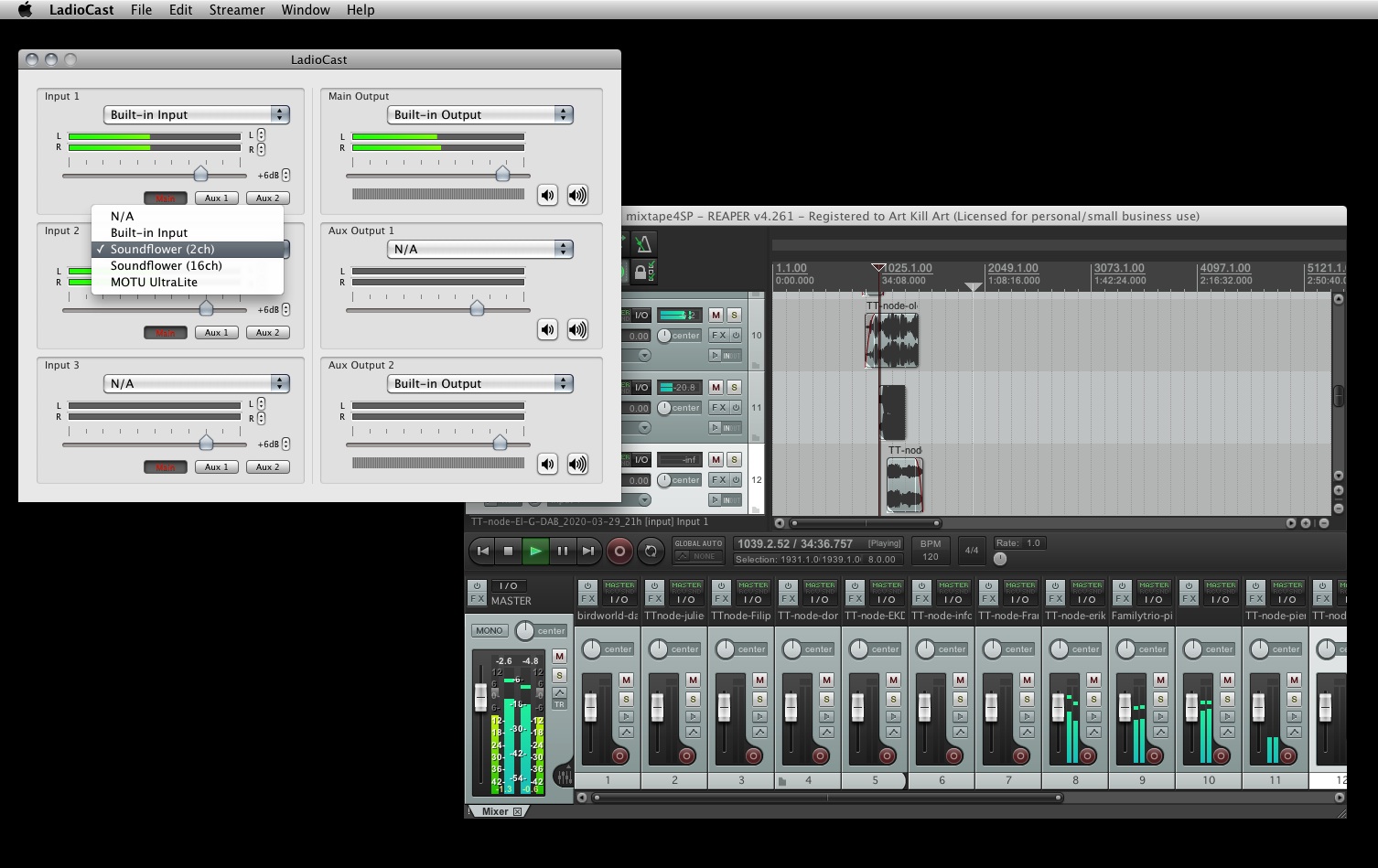 In Ladiocast, to get the sound of reaper, i've then to choose Soundflower as my second input.