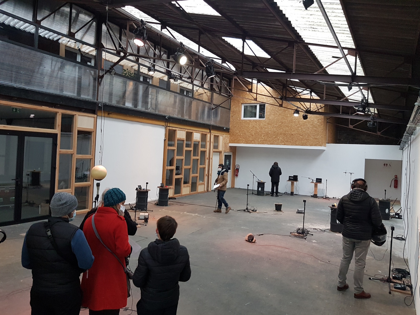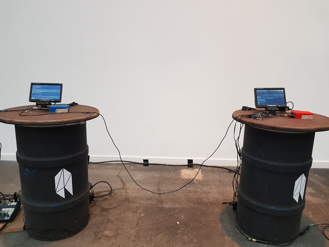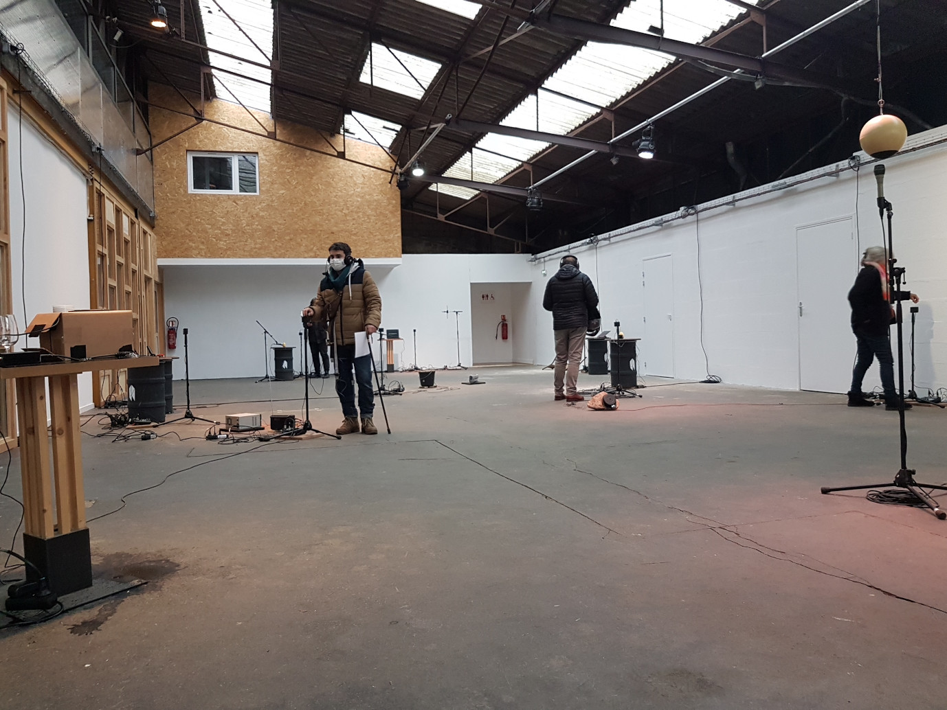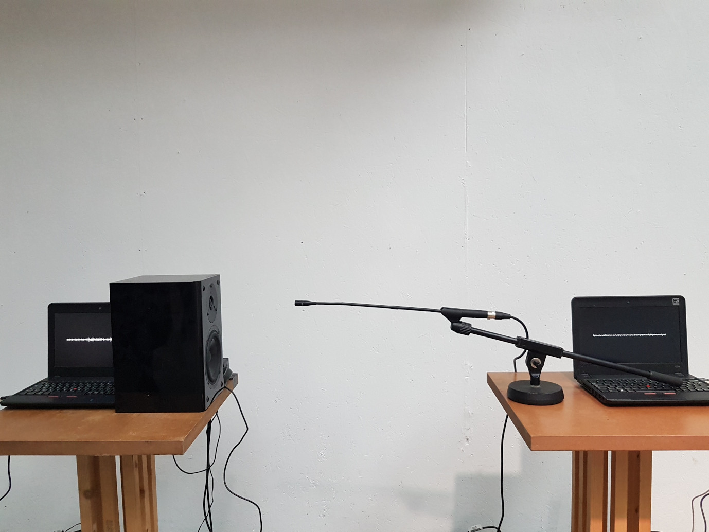 Haut-parleur, microphone, ordinateurs montrant un oscilloscope et modulant et démodulant le signal